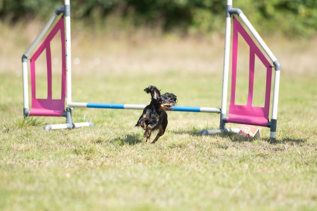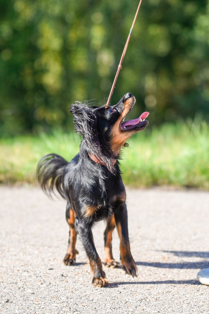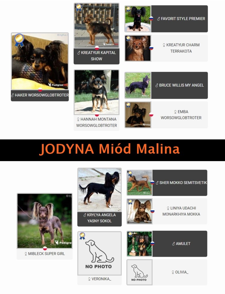 Jodyna jest drugim zakupionym przeze mnie toyem z hodowli Miód Malina. Jest córką utytułowanego reproduktora Hakera Worsowglobtrotter z hodowli Moniki Batog, i doświadczonej suki hodowlanej. Ponieważ zależało mi na kolejnym psie, z którym mogłabym swięcić tryiumfy wystawowe, dlatego Jodyna była bardzo starannie wybrana z reszty rodzeństwa. Niestety, plany swoje a życie swoje, toteż Jodyna wyrosła na dość dużego toya (ale nadal w standardzie rasy) z uszami półstojącymi, co jest cechą niepożądaną na wystawach, ale abslutnie nie dyskwalifikującą z hodowli. Ma piękną, ale nie laleczkowatą głowę, dobrze osadzone duże ucho, doskonałe proporcje i dobry ruch. Do tego ma naprawdę przepiękną szatę- obfitą, zwłaszcza na uchu i ogonie, doskonałej jakości. Nie da się ukryć, że bardzo szybko stała się moją ulubienicą, bo charakter ma, oj ma! To nie jest miła przytulanka, jak jej się coś nie podoba, to stanowczo daje temu wyraz, ale zarazem osobom, którym ufa pozwala na absoltnie wszystko. Bardzo fajnie pracuje na jedzenie i zabawki, toteż liczyłam, że będę miała toya do obedience. Niestety, wyraźnie pokazała, że agility sprawia jej dużo większą frajdę, toteż- trenujemy agility (ale nie zapomniałam o obedience 😀 ) Ogólnie kocham wszystkie moje psy, ale nie da się ukryć, że Jodyna zajmuje szczególne miejsce w moim sercu. I jestem pewna, że to właśnie ona urodzi mi zwycięzcę Świata!
