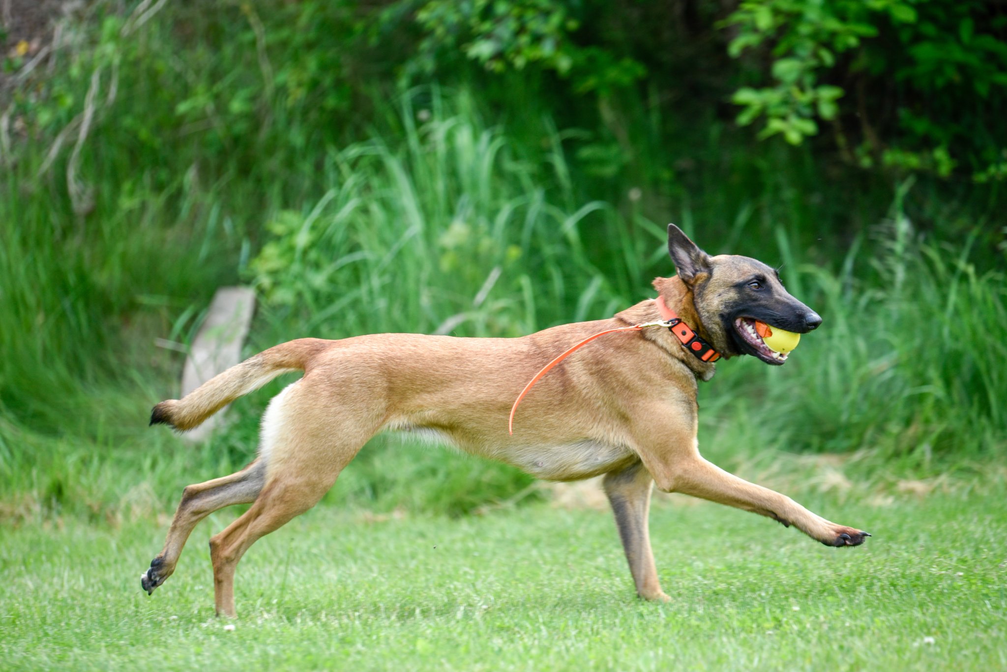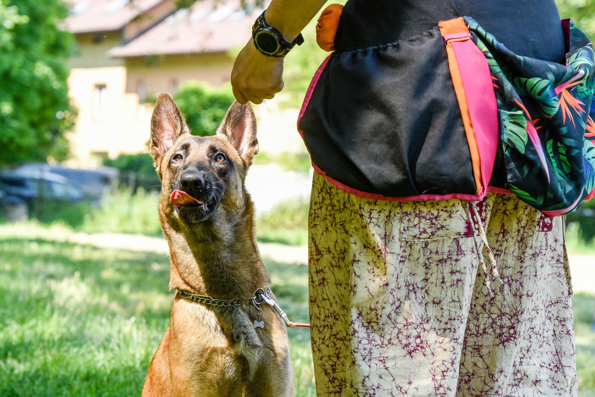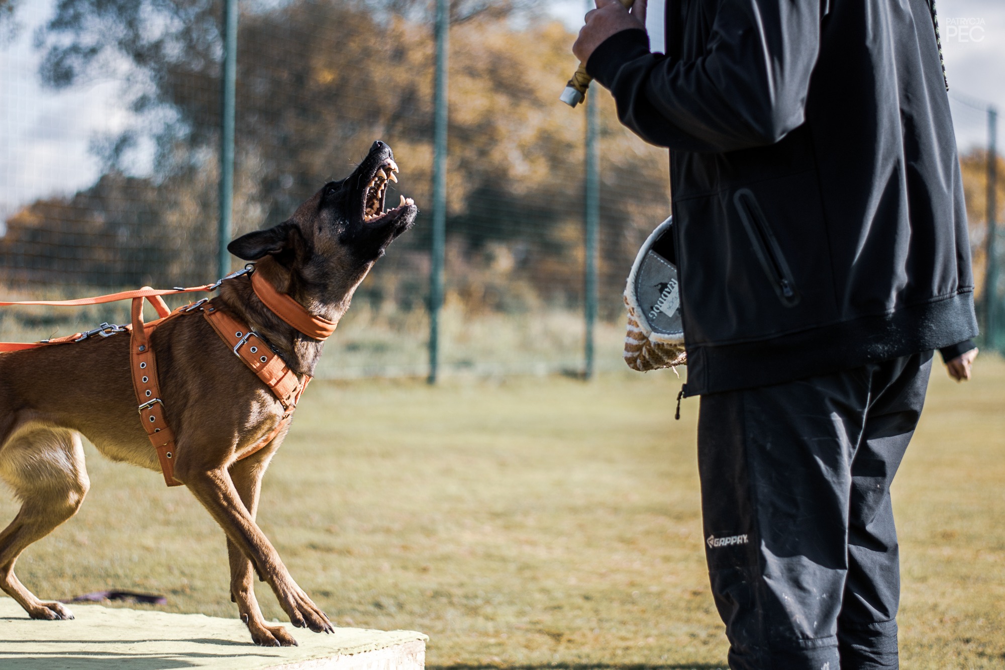 Kati trafiła do mnie zupełnym przypadkiem- przyjaciółka zadzwoniła, że w hodowli jej koleżanki jest suczka po znanym mi osobiście Asie- psim ratowniku i że wg właściciela Asa, Witolda Sieradzkiego, który szkolił i pracował z psami służbowymi, suczka ma dobre predyspozycje na psa służbowego. Więc wzięłam 😀 Szybko się okazało, że predyspozycje na psa służbowego nie do końca są dobre dla psa sportowego, niemniej nigdy nie żałowałam wzięcia Kati. Uważam ją za psa mojego życia, takiego jednego wyjątkowego, którego się wspomina do samej śmierci. Kati jest fantastyczna- bardzo socjalna do ludzi, przebojowa, szalona i wesoła. Wg mojego męża- po prostu jest pierdolnięta 😛 Być może, ale właśnie za to ją uwielbiam. Jest też bezczelna, uparta i nadmiernie samodzielna, a przy tym- świetnie umie o siebie zadbać. Ma bardzo dobry popęd jedzenia i łupu, ale nie nadmierny. Na początku miałam trochę problemu dogadać się z nią w sporcie, ale obecnie pracuje mi się z nią świetnie. Mam nadzieję że mimo mojej niechęci do egzaminów i zawodów wkrótce pokażemy efekty naszej współpracy. Czekam też na możliwość klonowania, bo niewątpliwie tego psa mogłabym klonować do końca własnego życia 🙂